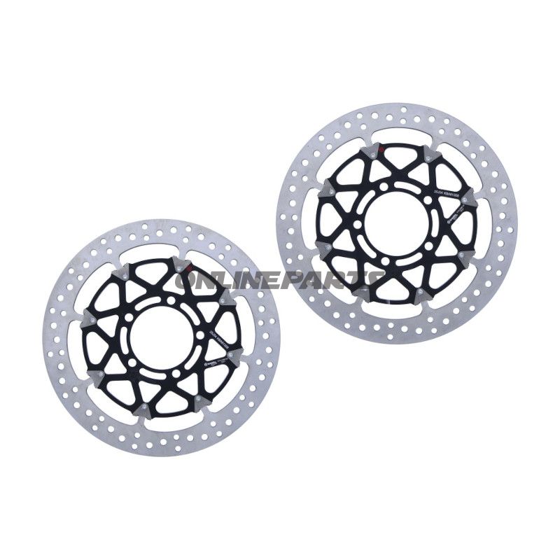 Vanligtvis tvådelad med flytande friktionsring och aluminiumbärare. Anslutning vanligtvis via klassiska Brembo radiella floaters.